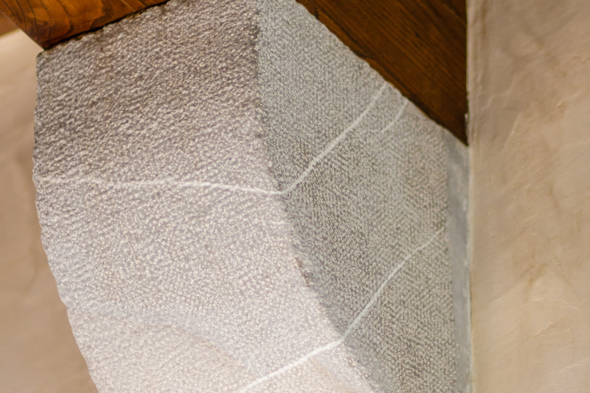 La ricostruzione della parte meridionale ha previsto anche l’utilizzo di elementi unici in Pietra Piasentina realizzati con cura e sapienza dagli scalpellini della Julia Marmi.