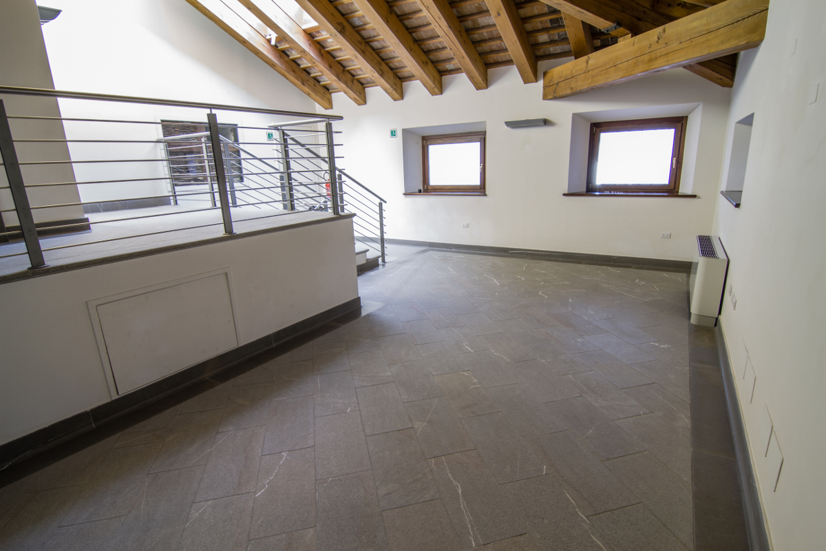 Nel recente intervento di restauro sono state rifatte le pavimentazioni ed i gradini delle scale di accesso in Pietra Piasentina della Julia Marmi.